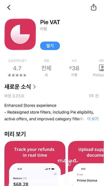 준비물: 여권, Pie Vat 앱, 환급받을 카드 등록, 영수증